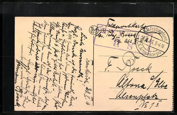 alte Ansichtskarte, gelaufen 1916 als Feldpost, guter Zustand