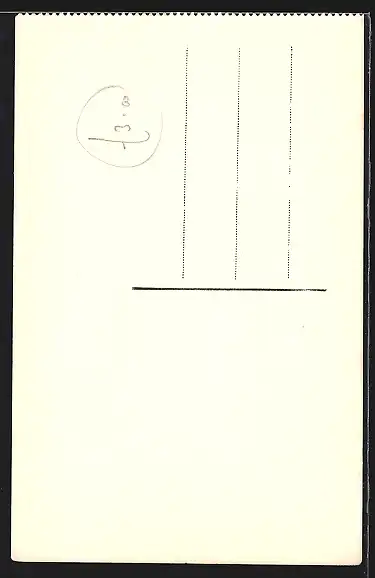 Personenbezogene Daten auf der Rückseite der Karte wurden durch blauen Textmarker unkenntlich gemacht. Die blauen Stellen sind auf die Vorderseite durchgeweicht und wirken sich negativ auf das Postkartenfoto aus