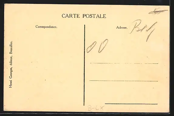 Personenbezogene Daten auf der Rückseite der Karte wurden durch blauen Textmarker unkenntlich gemacht. Die blauen Stellen sind auf die Vorderseite durchgeweicht und wirken sich negativ auf das Postkartenfoto aus