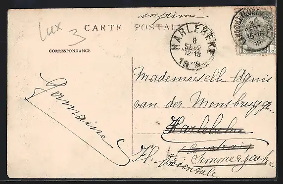 gelaufen 1908, Eckknicke li. oben und re. unten, guter Zustand