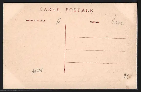 Personenbezogene Daten auf der Rückseite der Karte wurden durch blauen Textmarker unkenntlich gemacht. Die blauen Stellen sind auf die Vorderseite durchgeweicht und wirken sich negativ auf das Postkartenfoto aus