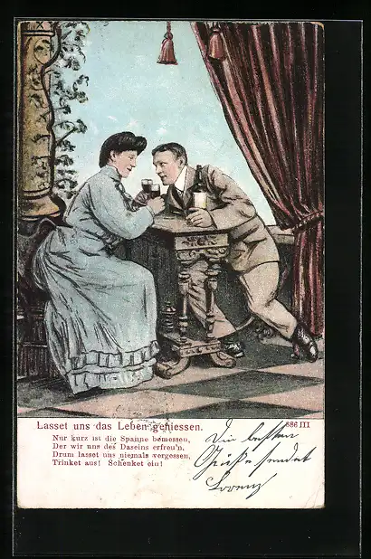 AK Lasset uns das Leben geniessen, Paar beim Wein