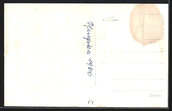 Personenbezogene Daten auf der Rückseite der Karte wurden durch blauen Textmarker unkenntlich gemacht. Die blauen Stellen sind auf die Vorderseite durchgeweicht und wirken sich negativ auf das Postkartenfoto aus