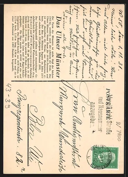 alte Ansichtskarte, gelaufen 1931, guter Zustand
