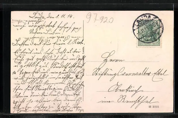 alte Ansichtskarte, gelaufen 1914, Stempelspur, guter Zustand