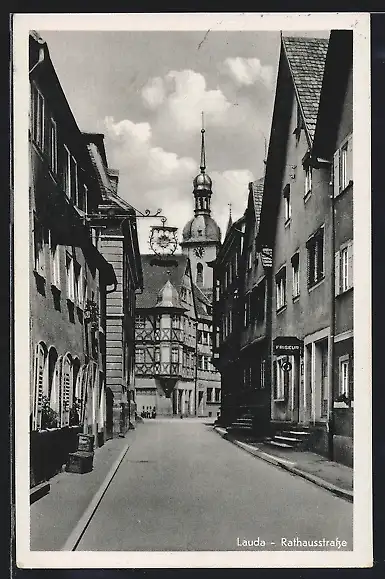 AK Lauda / Württ., Rathausstrasse mit Häuserfassaden
