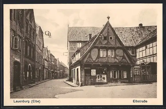 AK Lauenburg /Elbe, Elbstrasse, Ecke mit Elektro-Installations-Geschäft Meusing
