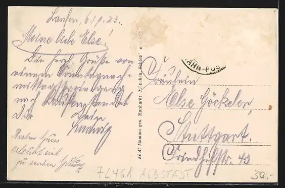 alte Ansichtskarte, gelaufen 1923, Briefmarke entfernt, rückseitig Oberflächenschaden, guter Zustand