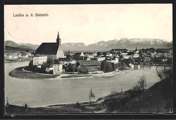AK Laufen a. d. Salzach, Teilansicht mit Kirche