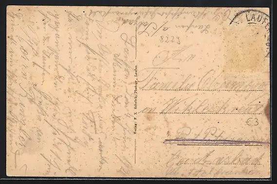 alte Ansichtskarte, gelaufen 1928, Briefmarke entfernt, Eckknicke oben, linke Kante beschnitten