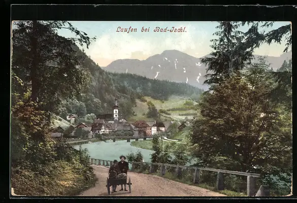 AK Laufen bei Bad Ischl, Salzkammergut, Stadtpanorama mit der Kirche