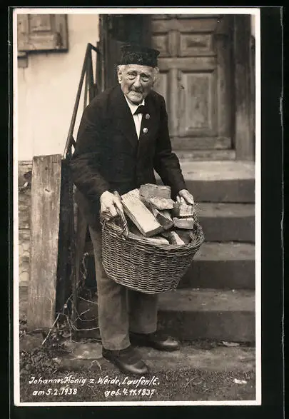 AK Laufen bei Eyach, Johannes König z. Weide mit Korb voller Feuerholz