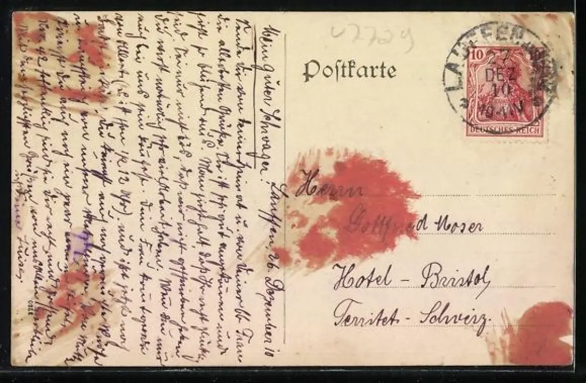alte Ansichtskarte, gelaufen, rückseitig Klebe- und Papierreste, guter Zustand