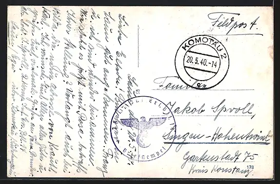 alte Ansichtskarte, gelaufen 1940, Stempelspur, guter Zustand
