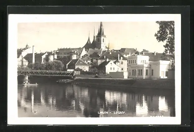 AK Laun / Louny, Ortspartie am Fluss