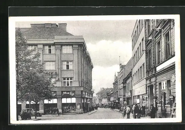 AK Laun / Louny, Strassenpartie mit Geschäften