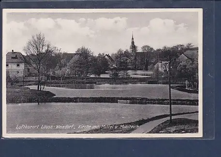 AK Luftkurort Lausa - Weixdorf, Kirche mit Mittel u. Mühlteich, nicht gelaufen von ca. 1940