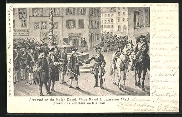 AK Lausanne, Arrestation du Major Davel, Place Palud 1723