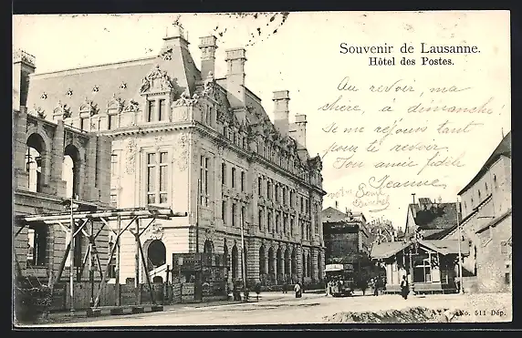 AK Lausanne, Hotel des Postes, Strassenbahn