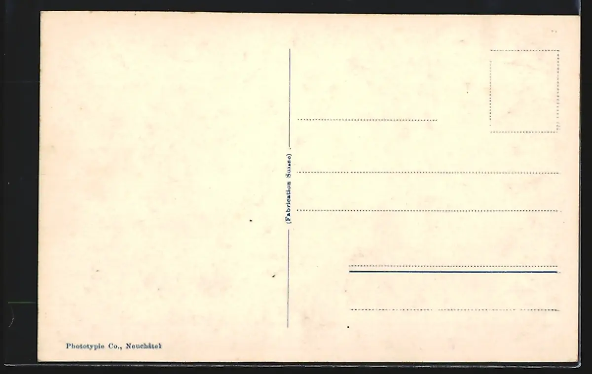 Personenbezogene Daten auf der Rückseite der Karte wurden durch blauen Textmarker unkenntlich gemacht. Die blauen Stellen sind auf die Vorderseite durchgeweicht und wirken sich negativ auf das Postkartenfoto aus