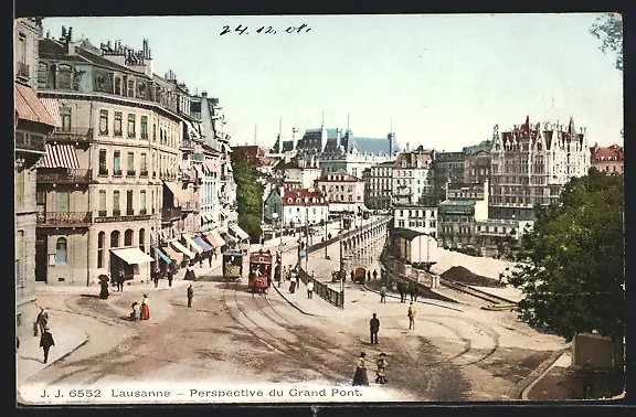 AK Lausanne, Perspective du Grand Pont, Strassenbahn