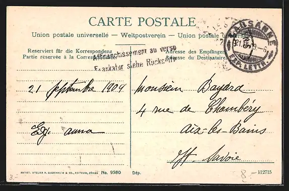 gelaufen 1909, kleiner Einriss re. unten, guter Zustand