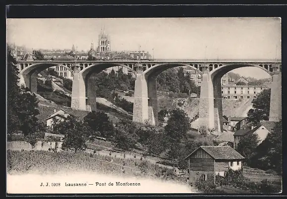 AK Lausanne, le pont de Montbenon, vue d`ensemble prise en direction de l`est