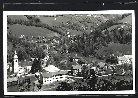 AK Laussa /O.-Ö., Ortsansicht mit Kirche vom Berg aus