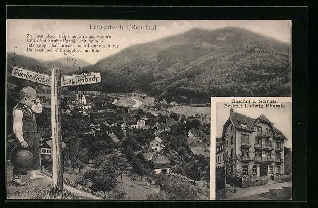 AK Lautenbach i. Renchtal, Ortsansicht und Gasthof z. Sternen