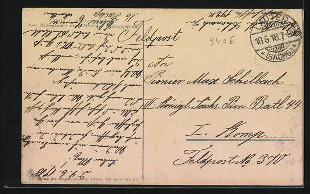 alte Ansichtskarte, gelaufen 1918, Eckknick rechts oben, guter Zustand