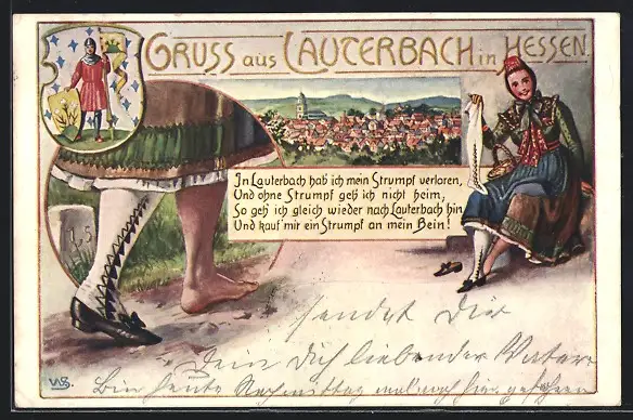 AK Lauterbach in Hessen, Ortsansicht, Mädchen hat ihren Strumpf verloren