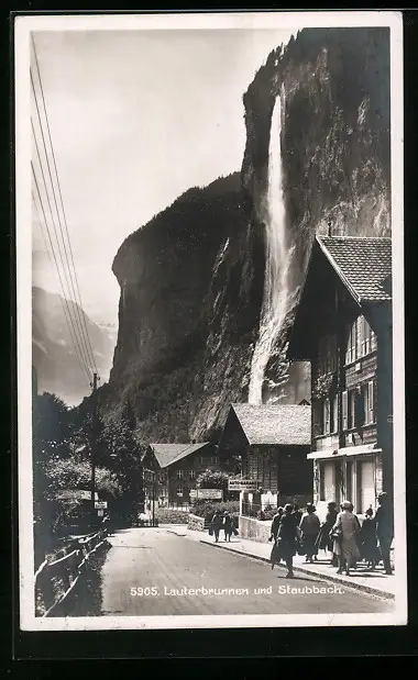 AK Lauterbrunnen, Ortspartie mit Staubbach, Wasserfall