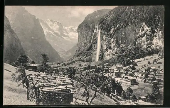 AK Lauterbrunnen, Talpanorama, Blick zum Wasserfall