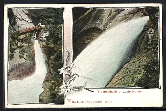 AK Lauterbrunnen, Trümmelbach, Brücke und Wasserfall