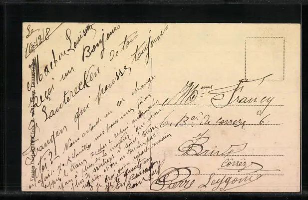 Personenbezogene Daten auf der Rückseite der Karte wurden durch blauen Textmarker unkenntlich gemacht. Die blauen Stellen sind auf die Vorderseite durchgeweicht und wirken sich negativ auf das Postkartenfoto aus