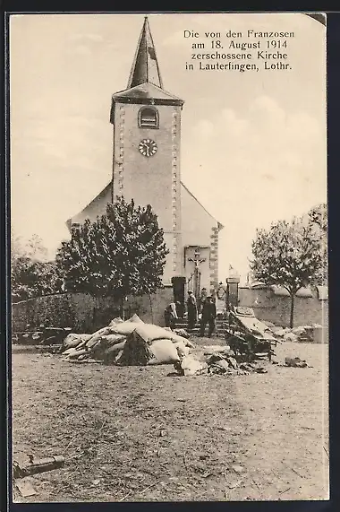 AK Lauterfingen /Lothr., Von den Franzosen 1914 zerschossene Kirche