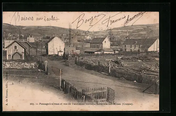 AK Lavaveix-les-Mines, Passage a niveau et vue de l`ancienne verrerie