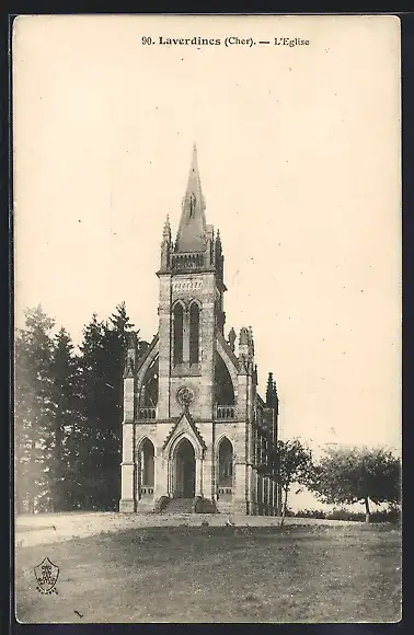 AK Laverdines, L`église majestueuse entourée d`arbres
