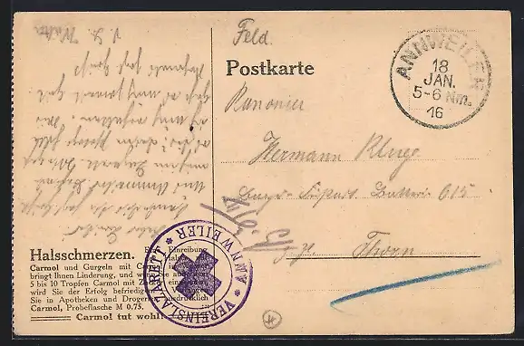 alte Ansichtskarte, gelaufen 1916, guter Zustand