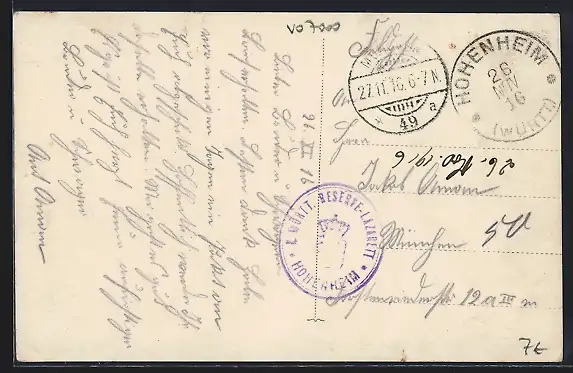AK Lazarettstempel Hohenheim, K. Württ. Reserve-Lazarett