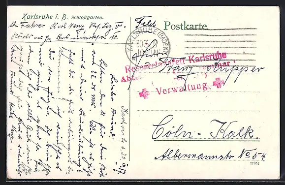 AK Lazarettstempel Karlsruhe, Reservelazarett