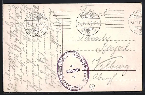 AK Lazarettstempel München, Vereinslazarett Karolinenplatz