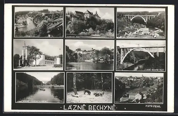 AK Lazne Bechyne, Neun Ansichten aus dem Ort