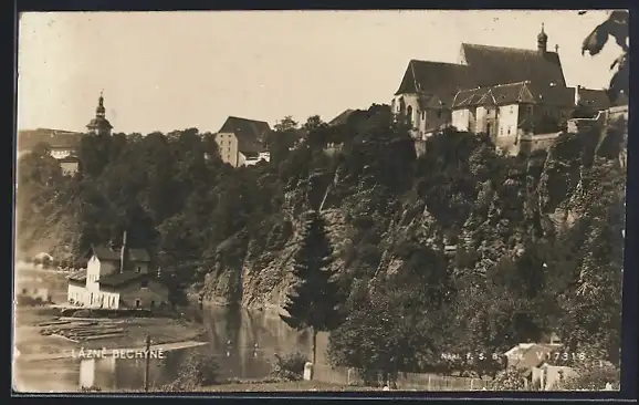 AK Lázne Bechyne, Panoramablick auf den Ort