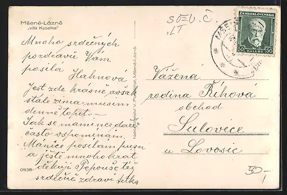 AK Lázne Msene, Blick auf eine Villa