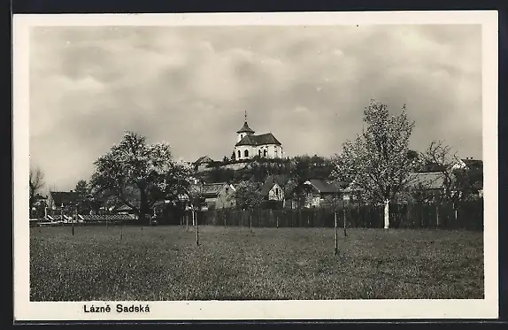 AK Lázne Sadská, Ortsansicht mit der Kirche
