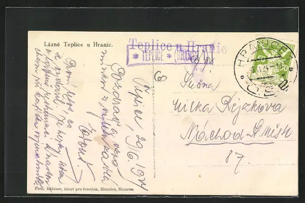 AK Lazne Teplice u Hranic, Partie an der Brücke