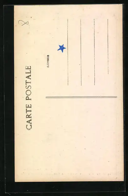 Personenbezogene Daten auf der Rückseite der Karte wurden durch blauen Textmarker unkenntlich gemacht. Die blauen Stellen sind auf die Vorderseite durchgeweicht und wirken sich negativ auf das Postkartenfoto aus
