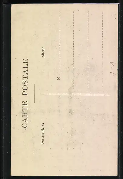 Personenbezogene Daten auf der Rückseite der Karte wurden durch blauen Textmarker unkenntlich gemacht. Die blauen Stellen sind auf die Vorderseite durchgeweicht und wirken sich negativ auf das Postkartenfoto aus