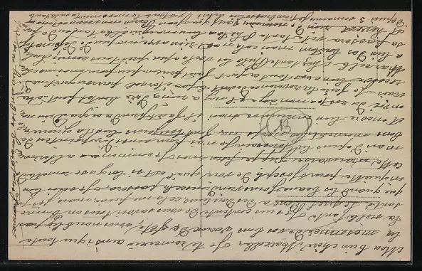 Personenbezogene Daten auf der Rückseite der Karte wurden durch blauen Textmarker unkenntlich gemacht. Die blauen Stellen sind auf die Vorderseite durchgeweicht und wirken sich negativ auf das Postkartenfoto aus